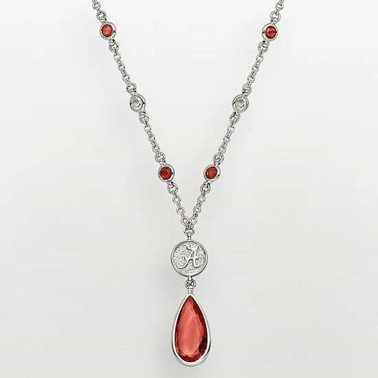 Athletic, yet elegant. This Alabama Crimson Tide Y necklace features a team logo link and red and white crystals. Add eye-catching appeal to your game day attire with this silver-tone necklace.