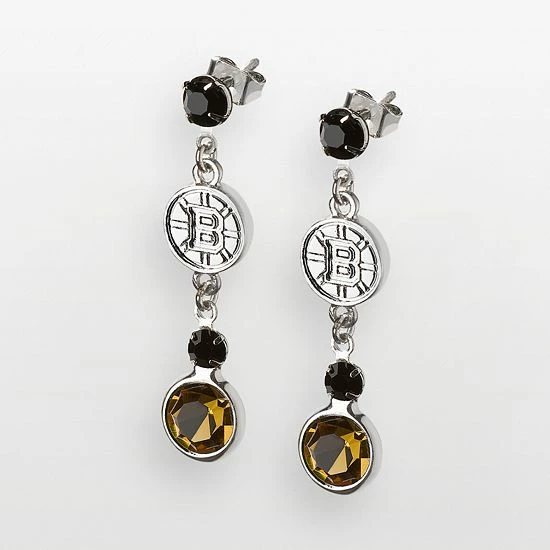 Game day is here! These Boston Bruins silver-tone earrings show off your sporty sense of style. Featuring team logo links, and black and gold round-cut crystals, these linear drop earrings are the perfect finishing touch. Find more NHL jewelry and accessories at Kohls.com.