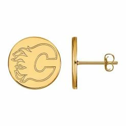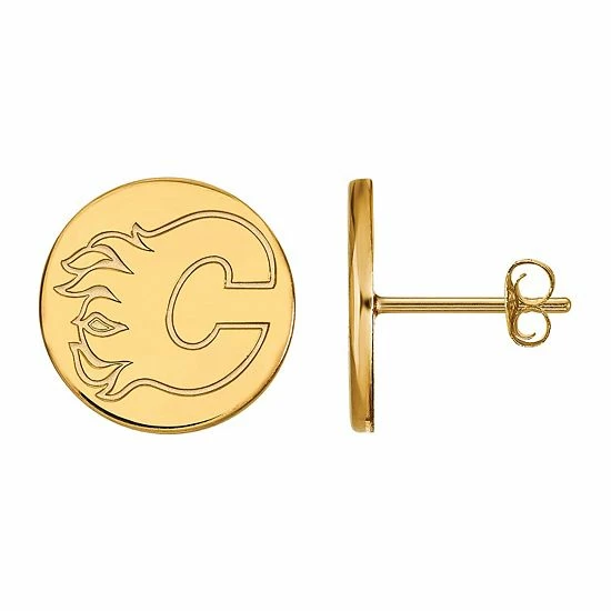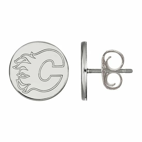 Show off your fandom in style with this awesome sterling silver Calgary Flames small disc stud earrings.