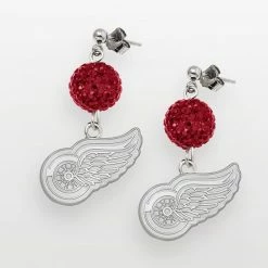 For the fashionable Detroit Red Wings fan. Pave-set red crystals make these ball drop earrings glitter and glow. Cheer on your favorite hockey team wearing these stylish sterling silver earrings.