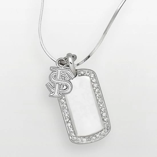 Display your team pride with this Florida State Seminoles sterling silver dog tag pendant. A team logo charm and cubic zirconia stones make this necklace the perfect game day accessory. Pair it with a Florida State Seminoles tee for a winning look.