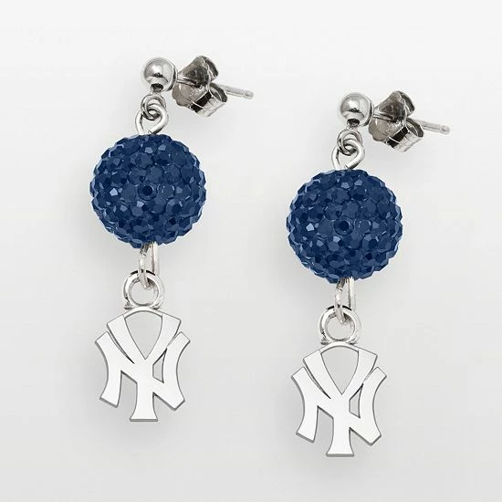 Show your devotion with these New York Yankees earrings. The blue, pave-set crystal balls and team logo charms let everyone know which team has the best fans. Comes in a gift box.