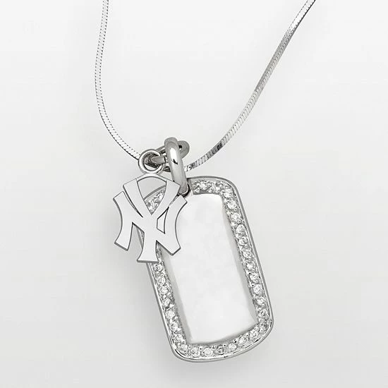 Show your loyalty with this New York Yankees necklace. The round-cut cubic zirconia stones, team logo charm and dog tag pendant will mark you as a true Yankees fan. Comes in a gift box.