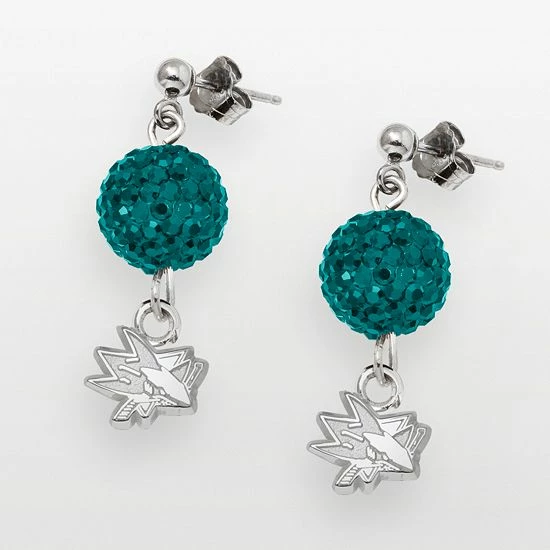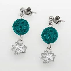 For the fashionable San Jose Sharks fan. Pave-set teal crystals make these ball drop earrings glitter and glow. Cheer on your favorite hockey team wearing these stylish sterling silver earrings.