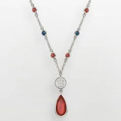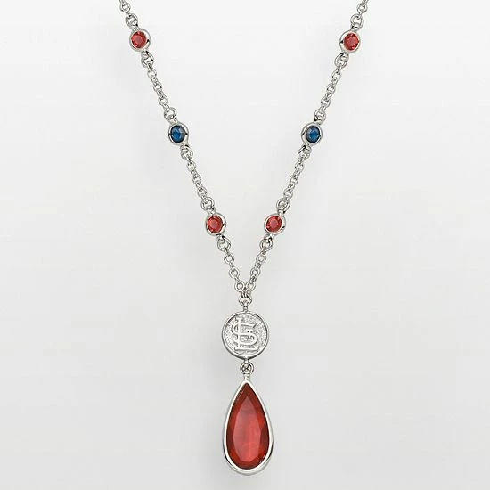 Tried and true. This St. Louis Cardinals sterling silver-over-brass Y necklace features a team logo, a large, red teardrop crystal and red and blue crystals. Comes in a gift box.