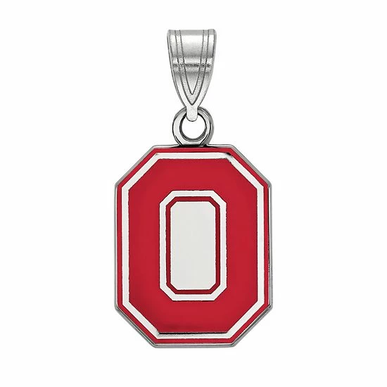Show love for the Buckeyes wearing this sterling silver Ohio State enamel pendant.