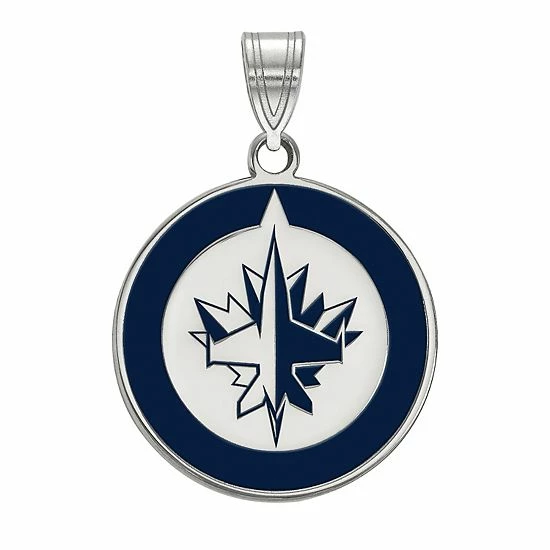 Showcase your favorite team with this sterling silver Winnipeg Jets enameled logo pendant.