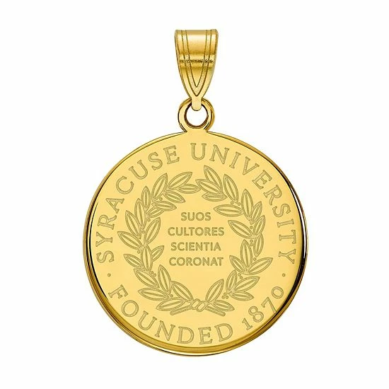 Go Orange! Show your pride for your favorite university with this LogoArt Syracuse Orange Sterling Silver 14K Gold Plated Large Crest Pendant.