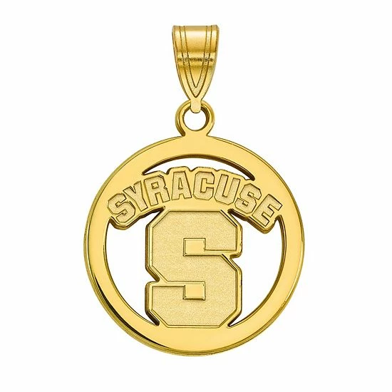 Go Orange! Show your support for your favorite university with this LogoArt Syracuse Orange Sterling Silver 14K Gold Plated Medium Pendant In Circle.