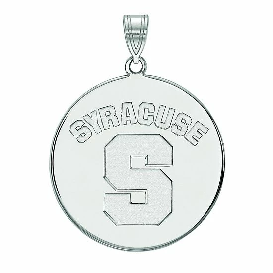 Go Orange! Show your support for your favorite university with this LogoArt Syracuse Orange Sterling Silver Rhodium Plated XL Disc Pendant.