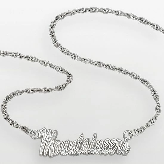 Show your spirit with this West Virginia Mountaineers sterling silver script necklace. The “Mountaineers” nameplate provides a charming style. Have a winning look on game day or any day with this sterling silver script pendant.